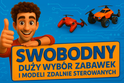 Swobodny.pl to sklep internetowy z zabawkami dla dzieci w każdym wieku. Oferujemy edukacyjne i kreatywne produkty, które rozwijają wyobraźnię, uczą i bawią. Znajdziesz u nas klocki, gry, puzzle, kolejki, instrumenty muzyczne, modele RC oraz pojazdy na akumulator. Stawiamy na bezpieczeństwo i jakość – wybieramy sprawdzone zabawki, które pomagają dzieciom poznawać świat poprzez zabawę. Szukasz pomysłu na prezent dla dziecka? Sprawdź nasz asortyment.Sklep z zabawkami dla dzieci – Swobodny.pl