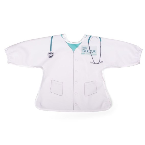 Dzięki śliniakowi z rękawami Baby Doctor nie musisz bawić się w przewidywanie przyszłości. Z nim Twoje dziecko stanie się doktorem już teraz i w ułamku sekundy zacznie wyglądać jak jeden z aktorów popularnego serialu medycznego. Dzięki dołączonej papierowej ramce z zabawnym tekstem, zestaw sprawdzi się świetnie także na zdjęciach. Pomyśl tylko, jakie wrażenie zrobisz udawanym selfie z maluchem-lekarzem!