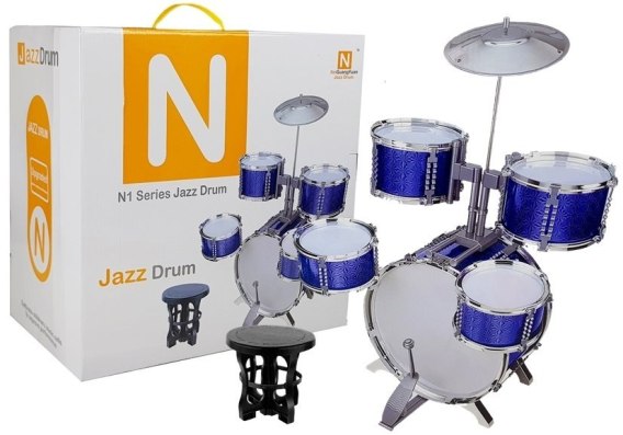 Duża Perkusja z Krzesłem 5 Bębnów Talerz Niebieska