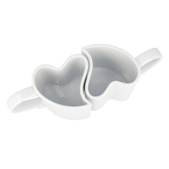 Dwa idealnie pasujące do siebie kubeczki w kształcie serca.
