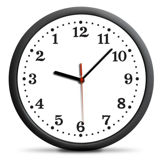 Zegar ścienny, który pozornie odmierza czas do tyłu.