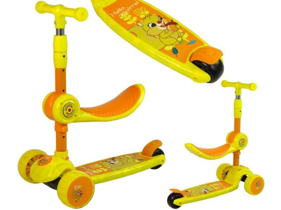 Hulajnoga Trójkołowa Balansowa Siodełko Żółte Muzyka Diody Wiewiórka
