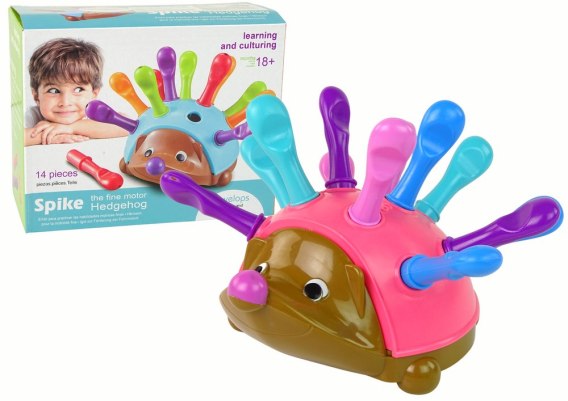 Dodatkowego uroku dodają mu kolce, które maluchy mogą przyczepiać. W zestawie znajduje się 12 plastikowych kolców, które należy umieścić w okrągłych otworach na jeżyku. To nie tylko wyzwanie dla małych paluszków, ale również świetny sposób na naukę liczenia od 1 do 12, ponieważ znajdują się na nim również liczby.