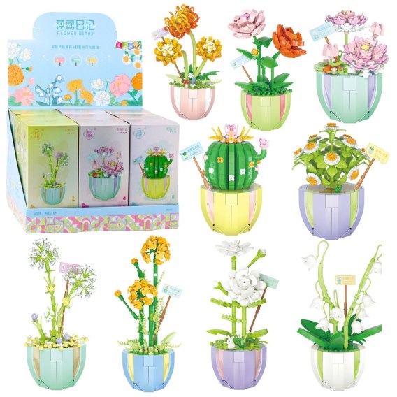 Klocki konstrukcyjne Kwiatki to zachwycający zestaw kreatywny, który pozwala stworzyć realistyczne modele roślin doniczkowych. Zestawy zawierają od 269 do 444 elementów i umożliwiają budowę kolorowych kwiatów takich jak stokrotki, róże, słoneczniki, lilie, a nawet kaktusy - każdy w eleganckiej, pastelowej doniczce.