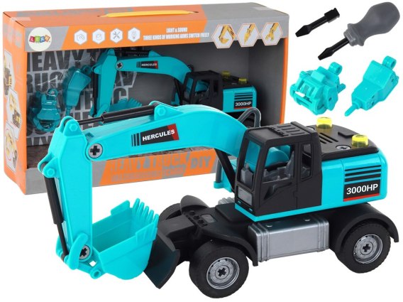Zestaw obejmuje śrubokręt oraz dwa wkręty, które umożliwiają składanie i rozkładanie koparki na 72 różne części. Dzieci mogą cieszyć się procesem montażu, który rozwija zdolności manualne, koncentrację oraz logiczne myślenie.