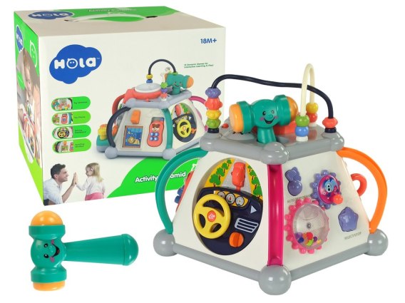 Wielofunkcyjna kostka edukacyjna rozwija zdolności manualne oraz wyobraźnię maluszka na wiele sposobów. Zabawka posiada pięć płaszczyzn: cztery boczne i jedną górną. Każda z nich jest inna i zaskakuje swoimi propozycjami ciekawej zabawy. Uważamy, że taki produkt na pewno zaabsorbuje nawet najbardziej wymagające pociechy. Solidne wykonanie i żywa kolorystyka dodatkowo przyciągają uwagę dziecka, zachęcając do niebanalnej zabawy.