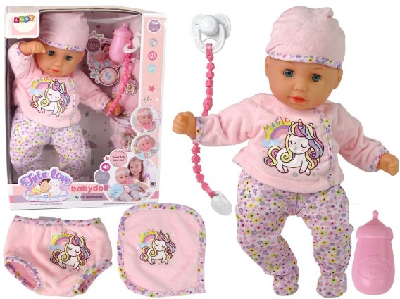 Lalka Bobas Dźwięk Smoczek Śliniaczek Różowa Piżama Jednorożec