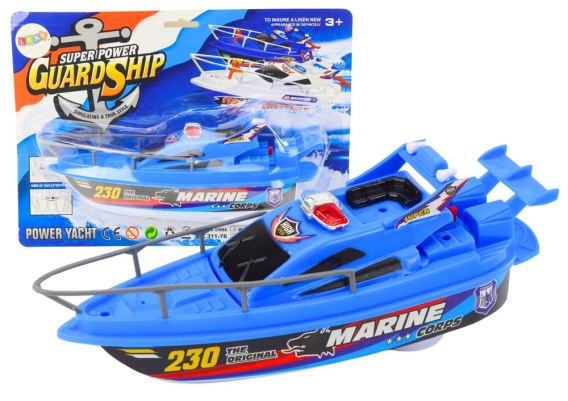 Łódź policyjna na baterie w kolorze niebieskim zachęca do zabawy w wodzie. Dzięki napędowi płynie po powierzchni, dostarczając dzieciom mnóstwo radości. Realistyczny wygląd, łatwa obsługa czynią ją idealną dla małych miłośników wodnych przygód.