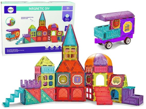 Zestaw klocków magnetycznych będzie nie lada zabawą oraz wyzwaniem dla małych konstruktorów. Radość i satysfakcja z własnych projektów pozwoli budować pewność siebie malucha, ale i też rozwijać logiczne myślenie i kreatywność. Mały architekt będzie mógł zbudować zamek dla swojej królowej. Po skończonej pracy może pochwalić się własną budowlą płaską, bądź w 3D.