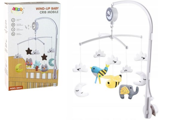 Karuzelka do łóżeczka z pluszowymi chmurkami to idealna zabawka dla maluszka. Motywem karuzelki są wesołe chmurki, księżyc i kolorowe zwierzątka na pewno spodobają się bobaskowi, a delikatny ruch i spokojna melodia kołysanki będą działały uspakajająco.