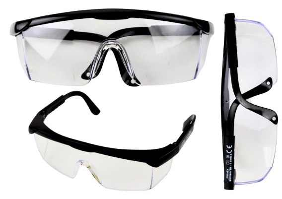 Okulary ochronne klasy optycznej 1 wyposażone są w regulowane ramiona, które umożliwiają dostosowanie długości, oraz mają czarną ramkę.