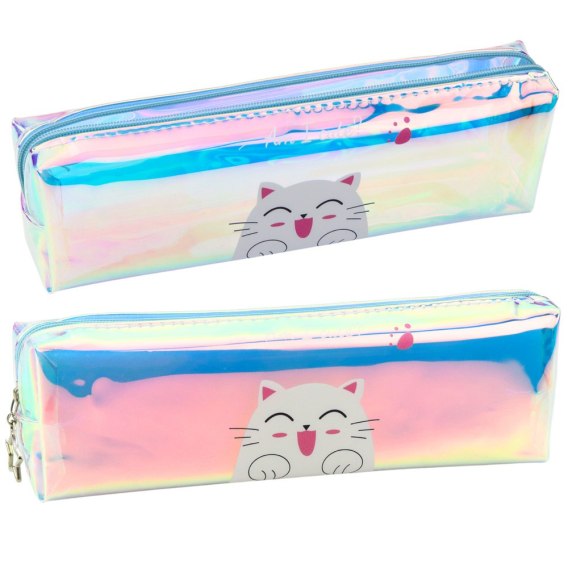 Piórnik szkolny z opalizującym wykończeniem i uroczym motywem kotka to połączenie nowoczesnego stylu z dziecięcą radością. Tęczowo-błyszcząca powierzchnia nadaje mu wyjątkowego charakteru, który przyciąga wzrok.