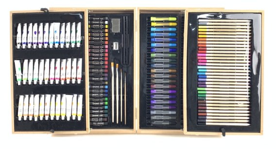 Profesjonalny Zestaw Artystyczny w Drewnianej Walizce 174 Elementy