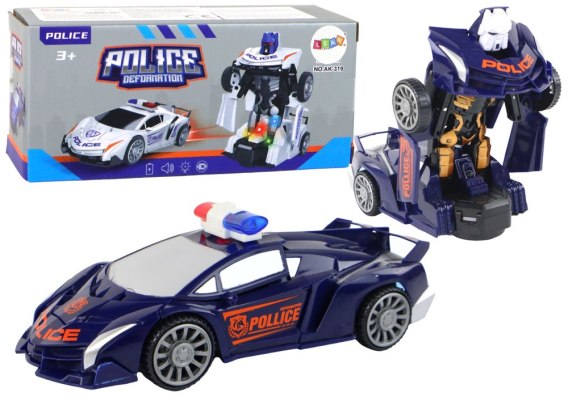 Samochód-Robot 2w1 - Granatowy sportowy samochód policyjny, który zmienia się w potężnego robota. Z efektami świetlnymi i dźwiękowymi. Doskonała zabawa i rozwijanie wyobraźni.