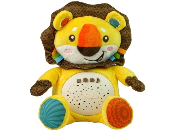 Lew posiada wbudowany projektor, który wyświetla na ścianach lub suficie zmieniające kolory gwiazdki. Wieczorem stworzy harmonie i magiczny nastrój w pokoju Twojego dziecka. Pluszowy projektor gwiazdek z pozytywką jest zabawką przeznaczoną dla dzieci w każdym wieku.