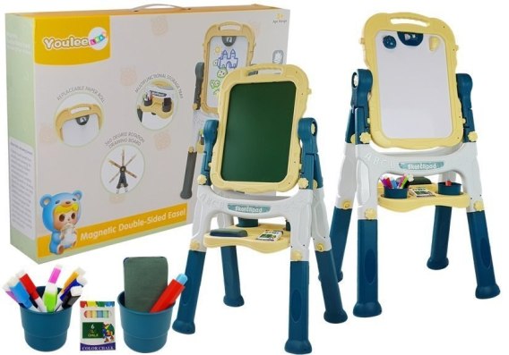 Wielofunkcyjna tablica z możliwością rysowania kredą i pisakami sprawi radość każdemu malcowi, który uwielbia rysować. Rozwinie w nim zmysł plastyczny, wyobraźnie oraz funkcje ręki i dokładność. Jesteśmy przekonani, że niebieska stojąca tablica pasuje do każdego pokoju dziecięcego! Rysowanie na tablicy bardzo pozytywnie wpłynie na rozwój dziecka.