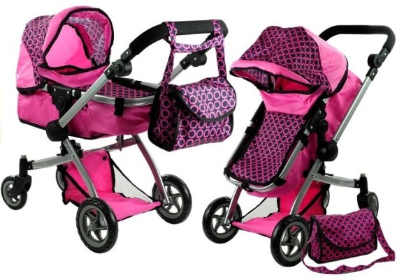 Wózek 2 w 1 przyciąga wzrok wszystkich dziewczynek swą konstrukcją, przypominającą budowę prawdziwego wózka, a także dziewczęcą kolorystyką, przełamaną detalami w formie wzoru kółeczek. To także rewelacyjny przedmiot dla kilkulatek, które lubią opiekować się zabawkowymi bobasami w różnych rozmiarach — od teraz mogą wyprowadzać swe lalki na spacer zarówno w spacerówce, jak i klasycznym wózku z gondolą. Zmiana tych wariantów jest bardzo prosta — wymaga zaledwie kilku ruchów, a w dużym stopniu urozmaica zabawę. Kolejną, dużą zaletą innowacyjnej konstrukcji wózka dla lalek jest zamontowanie dwóch kół stałych oraz dwóch mniejszych, obrotowych o 360 stopni kółek, które sprawiają, że prowadzenie wózka i manewrowanie nim na drodze jest bardzo lekkie i niewymagające siły.
