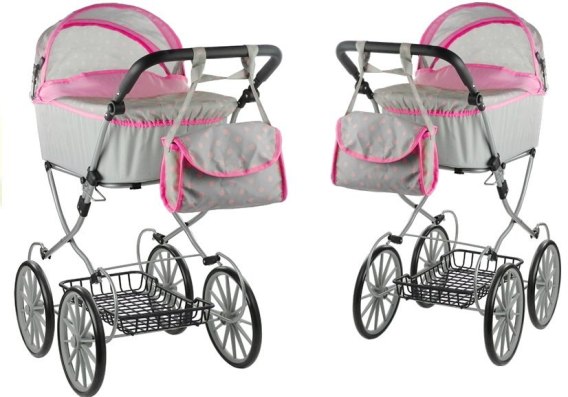 Głęboki wózek retro dla lalek Alice — Szary w różowe groszki
