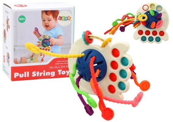 Sensoryczna ośmiornica to niezwykła interaktywna zabawka, która rozwija zmysły i umiejętności motoryczne dziecka w fascynujący sposób. Zapewniając różnorodność rozrywki, umożliwia dziecku nie tylko cieszenie się ciągnięciem kolorowych nici z jednego końca na drugi, ale także eksplorowanie możliwości wyciskania bąbelków i przesuwania koralików.