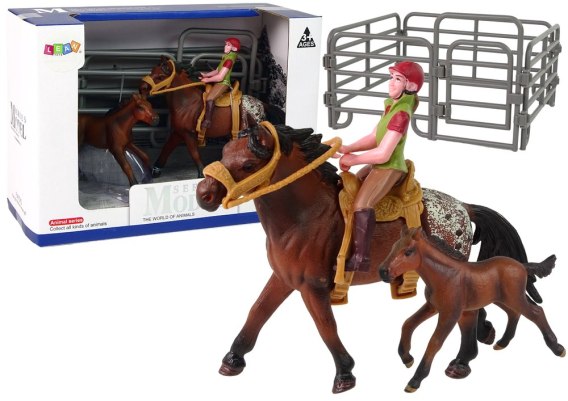 Zestaw 3 Figurek Konie i Zagroda Figurka Koń Źrebak Jeździec