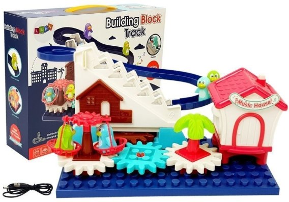 Zestaw Klocków ze Zjeżdzalnią Pingwiny Koła Zębate na Baterie