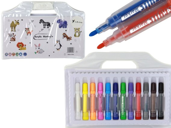Zestaw Kolorowych Markerów Akrylowych w Walizce 12 Sztuki