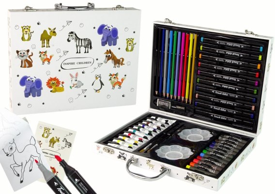 Solidna walizka z przyjaznymi zwierzętami to idealny prezent dla małych artystów. Zawiera 68 elementów, rozwijając kreatywność i umiejętności malarskie u dzieci. Wyraź siebie przez sztukę!